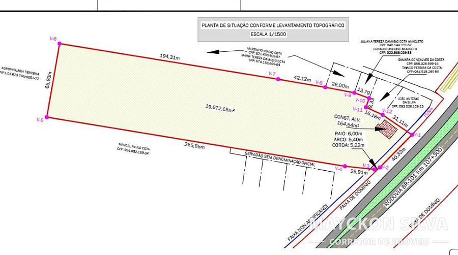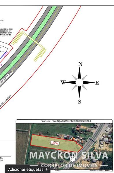 • Terreno frente BR 101 com acesso facilitado otima localização sentido norte sul com retorno proximo ,para sentido sul norte documentação em fase final de regularização !